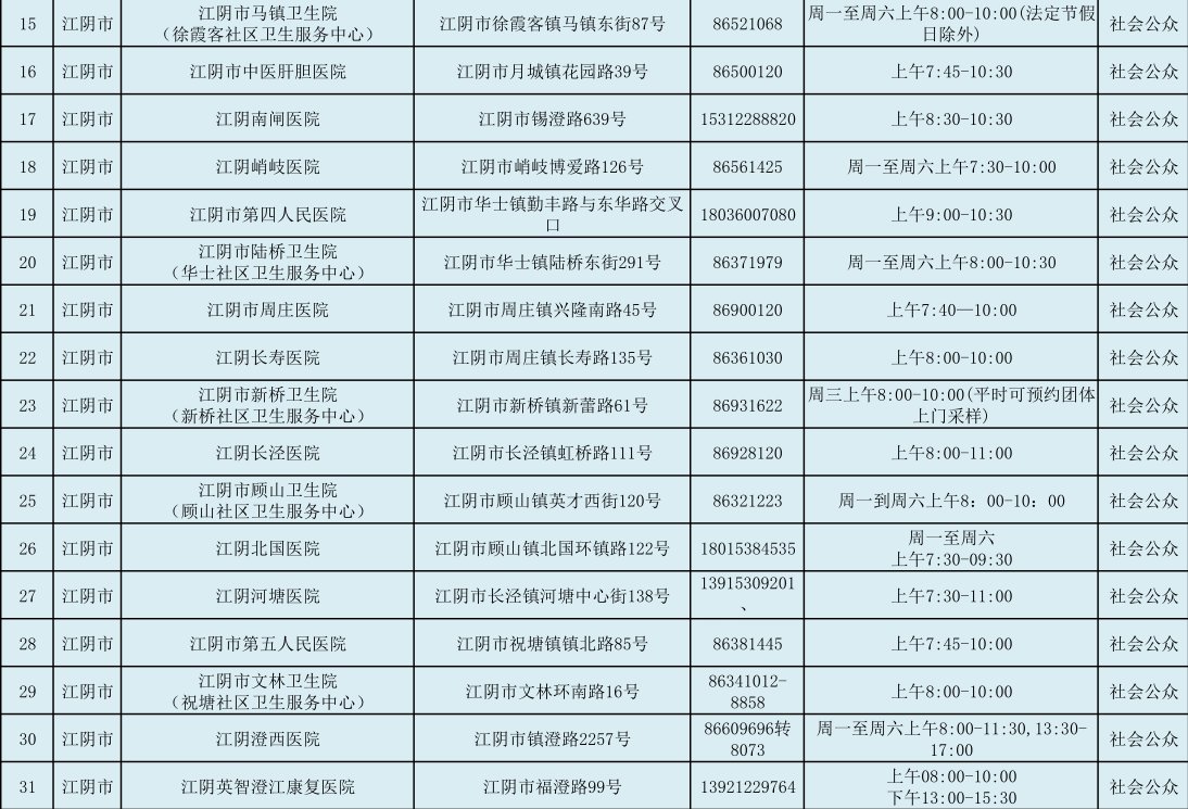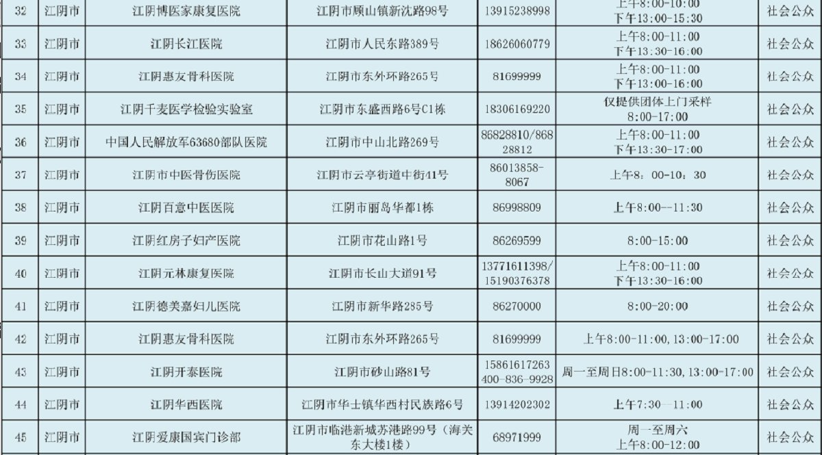 江阴市新冠病毒病毒检测集中采样服务点