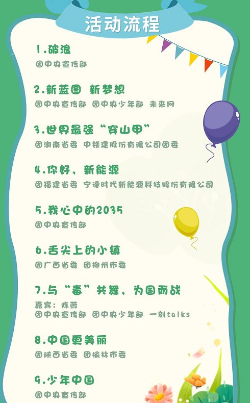 为深入学习宣传贯彻党的十九届五中全会精神,将于2020年12月12日(周六)19:00,通过@共青团中央微信、微博、哔哩哔哩、快手、抖音、今日头条、腾讯直播、视频号平台开展“青春新征程奋进十四五”学习党的十九届五中全会精神主题云团课、“红领巾相约2035”学习党的十九届五中全会精神主题云队课,本次直播还将在虎牙直播、斗鱼直播、唱吧、抖音火山版、火星直播、映客直播等平台的@青微工作室账号同步直播。更多精彩,欢迎锁定!