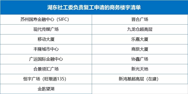 以上表格内的单位商务楼宇和载体复工相关事宜由湖东社工委负责。