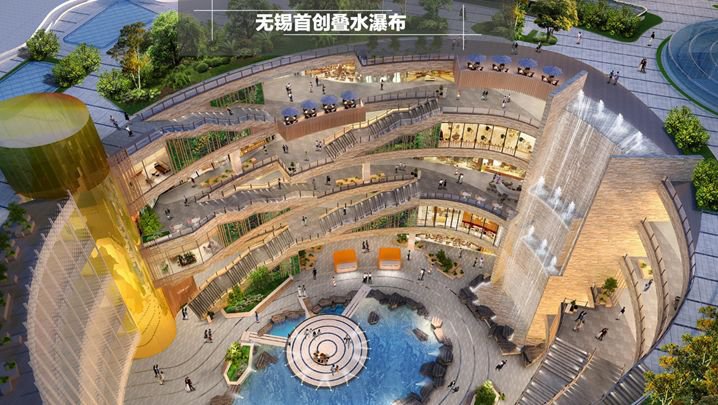 锡山八佰伴有3个中庭+地上5层购物中心,还有无锡首创叠水瀑布哦,效果图如下:
