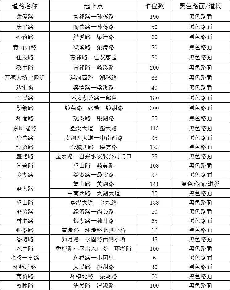 新增停车泊位路段一览