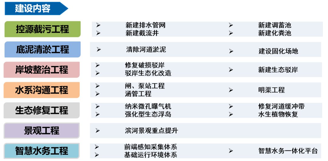 该项目将老夏港河-普惠中心河-史家村河-芦花沟河-西横河连通,涉及江阴城区的27条河道,建设内容包括但不限于控源截污、水系沟通、清淤疏浚、岸坡整治、生态修复、初期雨水整治、景观打造、智慧水务构建等。