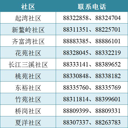 东区各社区联系方式