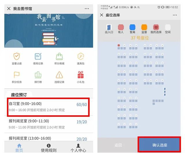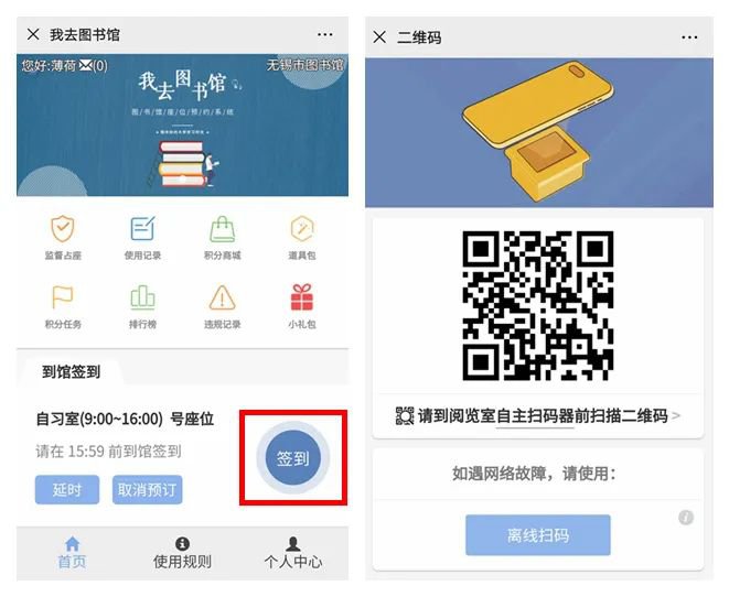 馆室当天开放前通过微信预约者,须在开放后30分钟内签到;馆室当天开放后通过微信预约者,须在60分钟内签到。超时未签到者,系统将自动取消其预约。