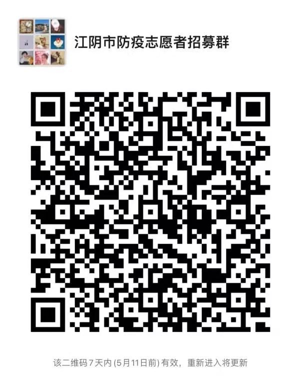 步骤二:扫描二维码进入“江阴市防疫志愿者招募群”,报名入群后,请将群昵称改为“XX镇街+姓名+联系电话”,并及时关注群内通知 (注意:由于群人数达200人后,扫码无法进群,可电话咨询工作人员)。