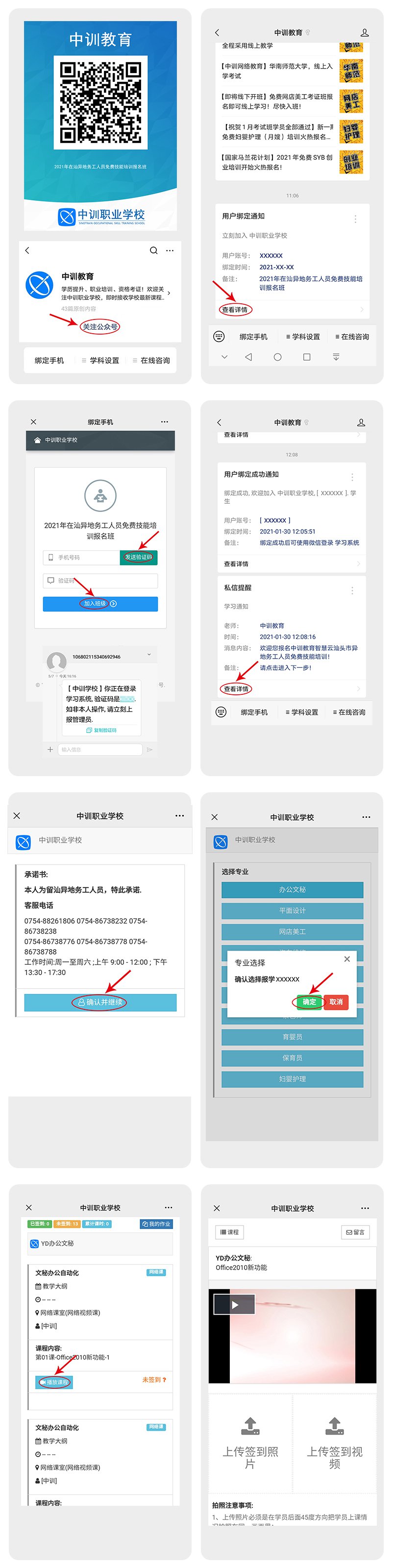 中训教育:扫描二维码,关注公众号,出现立刻加入后点击绑定手机,即可入班。