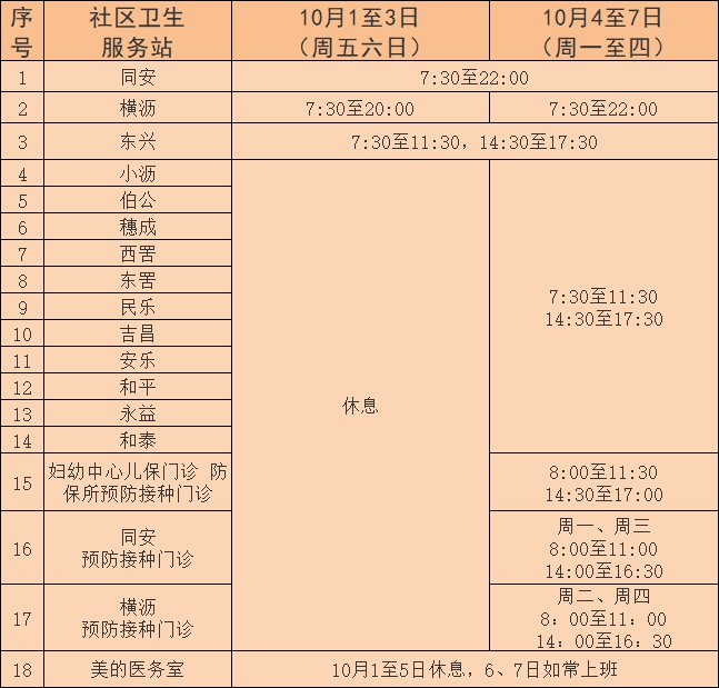 2021年国庆期间社区卫生服务中心开诊时间作出调整具体如下↓