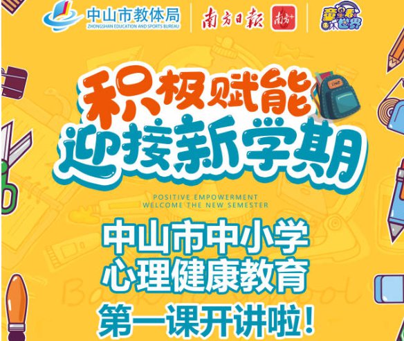 为帮助广大中小学生以稳定的情绪、积极的态度迎接新学期,尽早进入正常的学习作息,中山市教育和体育局、南方报业传媒集团中山分社、《童星看世界》栏目制作团队联合录制了中山市中小学开启新学期心理健康教育第一课——《积极赋能 迎接新学期》。
