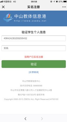 如出现下图的情况,说明此用户已在信息港实名注册,无需再注册,返回登录页面进行登录即可。如用户忘记账号、密码请参考常见问题(忘记账号)和(忘记密码)。