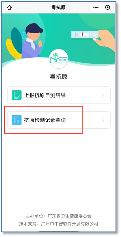 “粤抗原”小程序抗原检测结果查询步骤