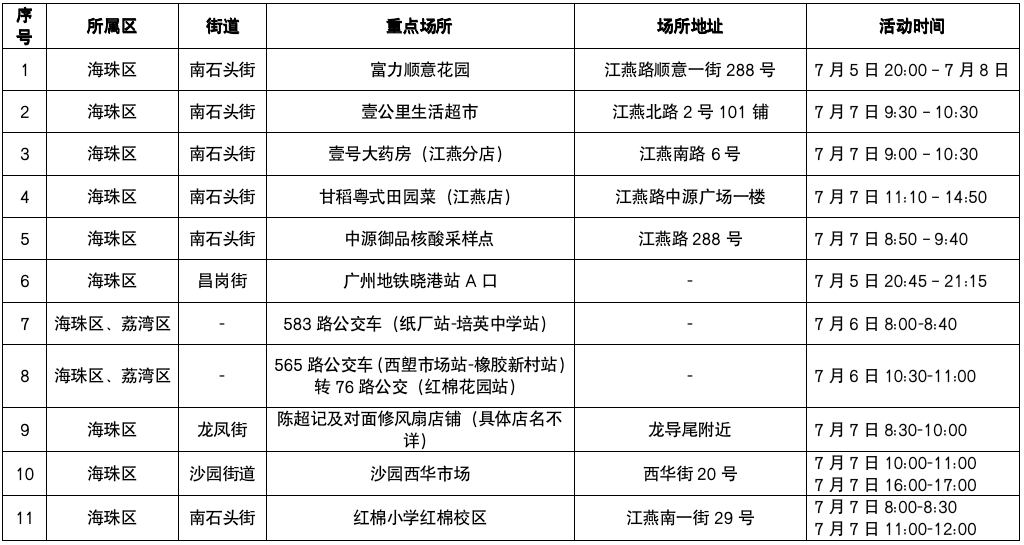 因疫情防控需要,请在下图提及的风险时间段到过相关重点区域和场所的人员,立即拨打电话(020-61198011;020-66850166)或扫描二维码向所在社区(村)联系报备,就近进行核酸检测,同时配合社区(村)和疾控部门要求做好健康管理。