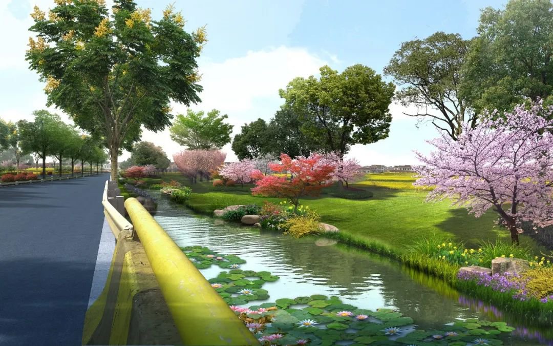 北起新明路,南至太湖大道,全长约2.7公里,绿化面积3.2万㎡。设计凸显春秋季相景观,以实生银杏、桂花为骨干树种,增加装饰景墙元素。下木层设计梳理减少地被色块,并增加时令草花、木本花境地被,打造清爽大气的道路景观,强化道路招商迎宾线定位及其浪漫的人居环境氛围。
