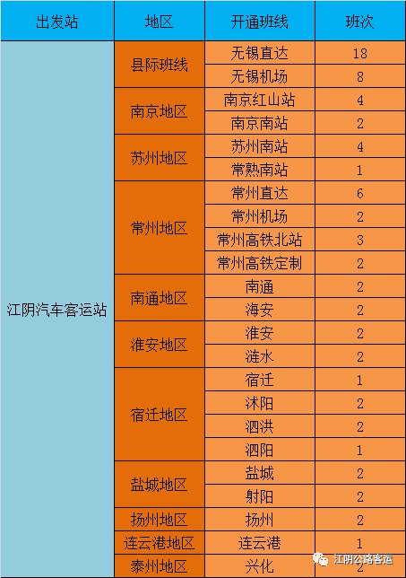 注:旅客可凭身份证到车站实名购票,或通过江阴公路客运微信公众号、巴士管家等售票平台购票乘车。咨询热线:0510-86888111