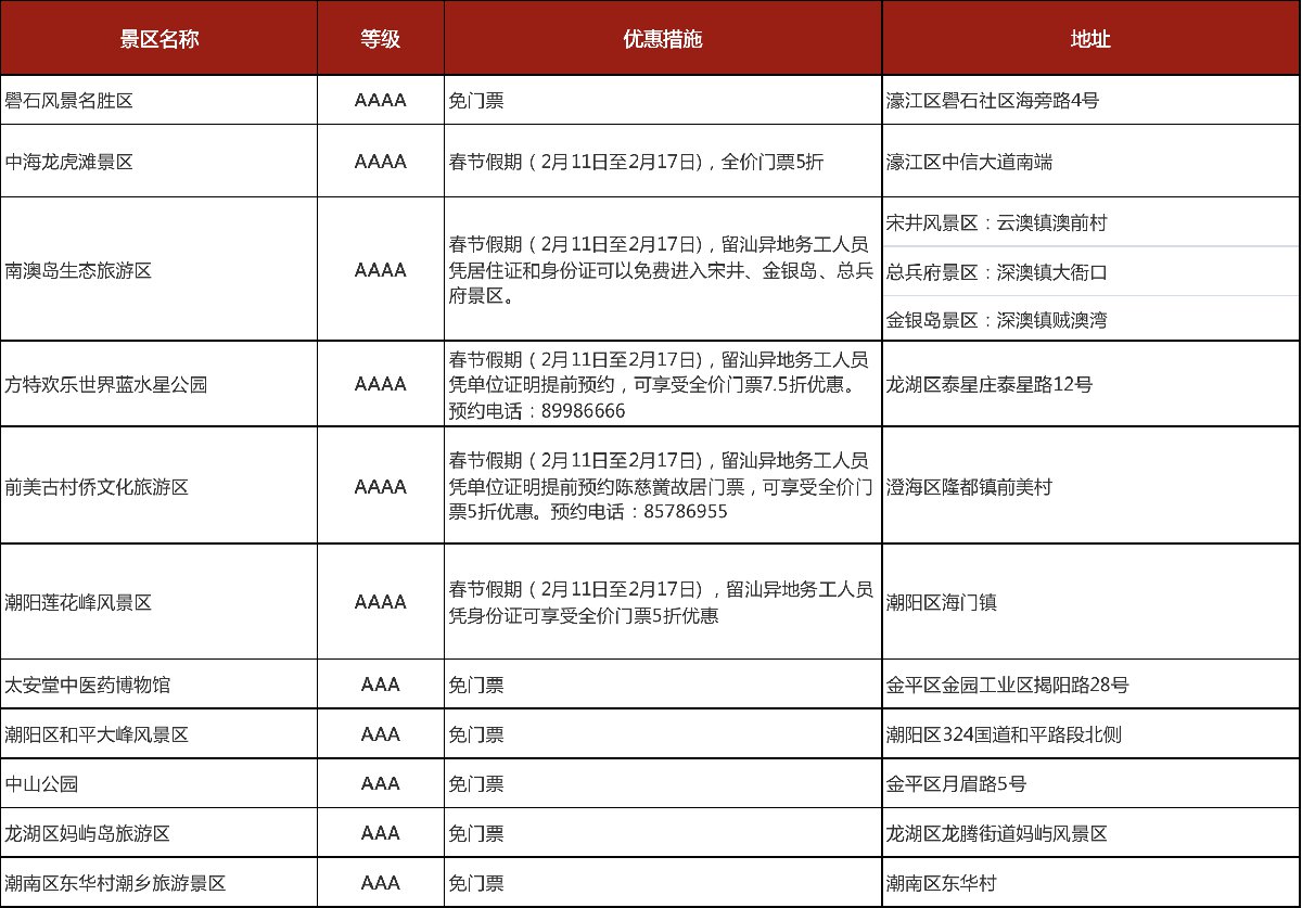 汕头市国家AAA级以上旅游景区2021年春节优惠措施