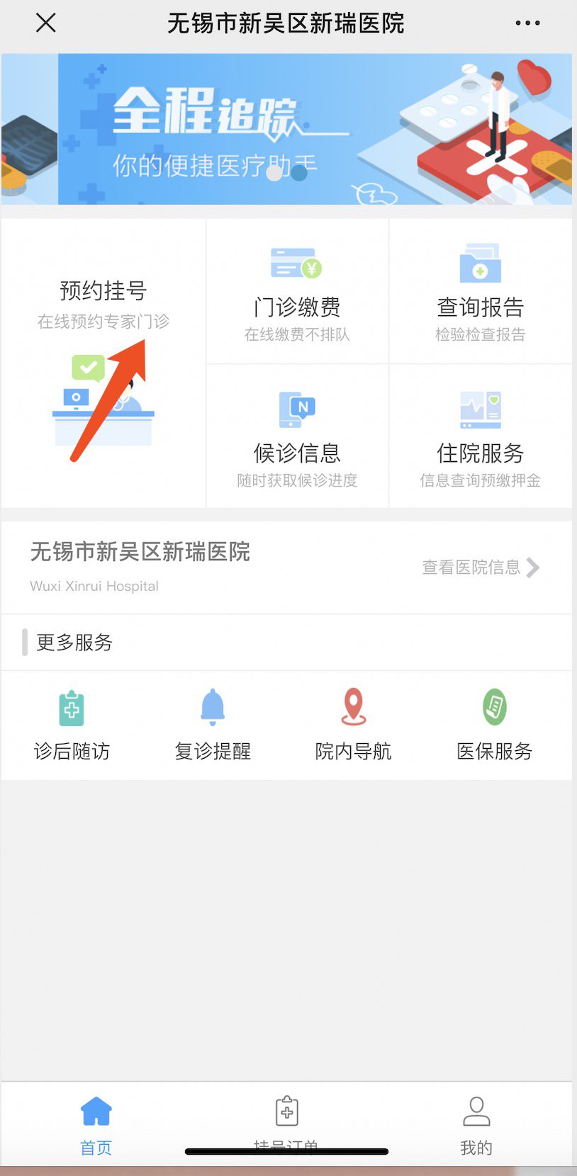 1、微信公众号关注“无锡市新吴区新瑞医院”,点击预约;