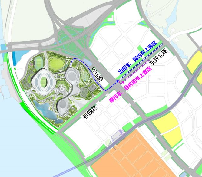 乘坐出租车、网约车、摩托车、非机动车观众离场路径图