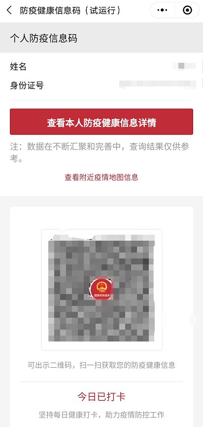 国家政务服务平台2月29日推出“防疫健康信息码”。民众可以一码知晓个人防疫健康风险,扫一扫出示“掌上健康报告”,进一步助力各地区疫情精准防控和有序复工复产。
