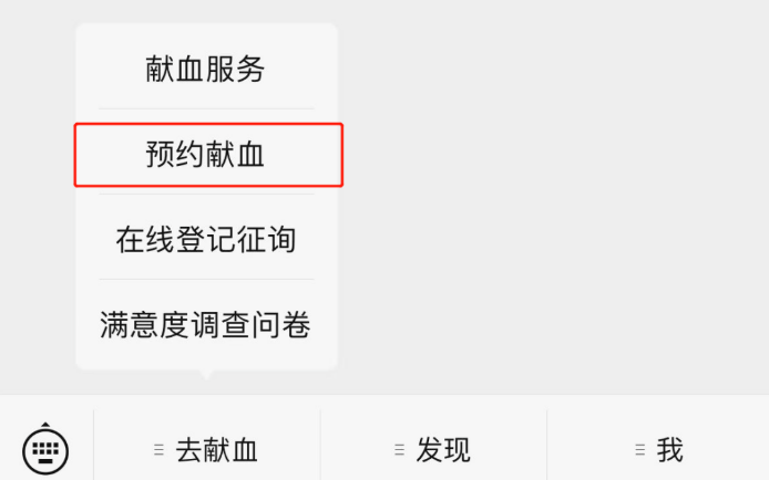 微信搜索【宜兴市红十字会血站】公众号,关注后点击菜单栏【去献血】