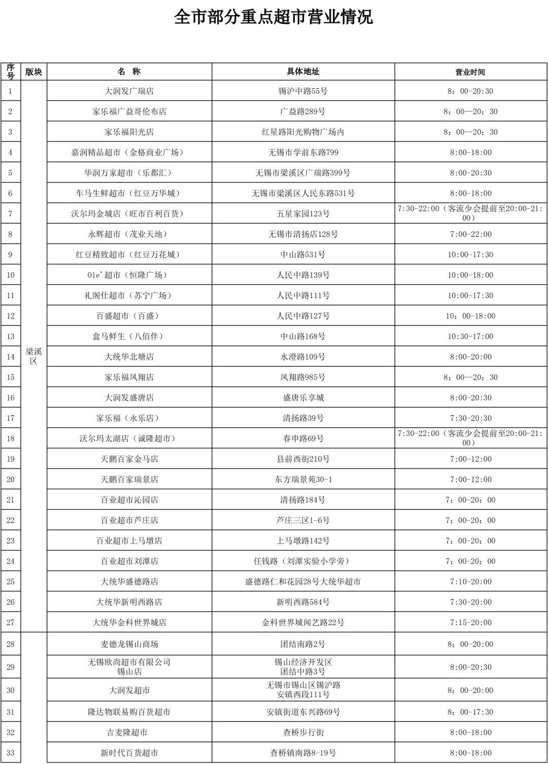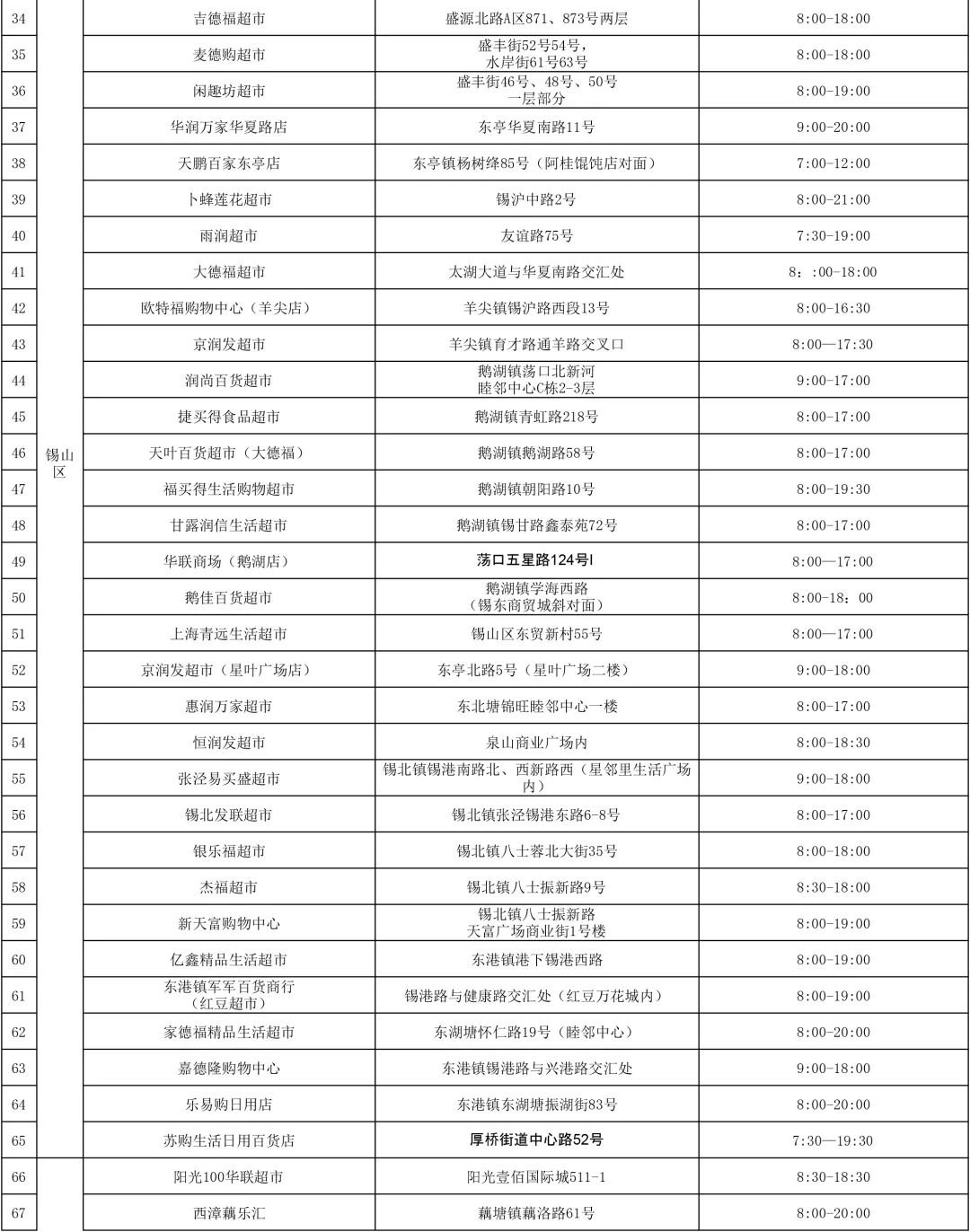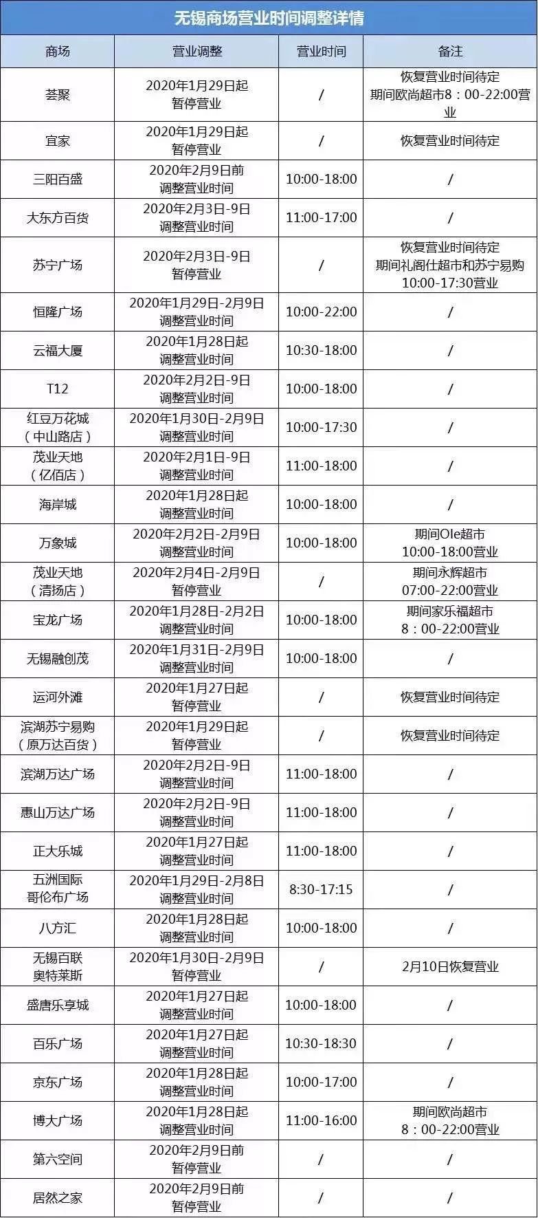 无锡肺炎防控期间商场超市营业时间(持续更新)