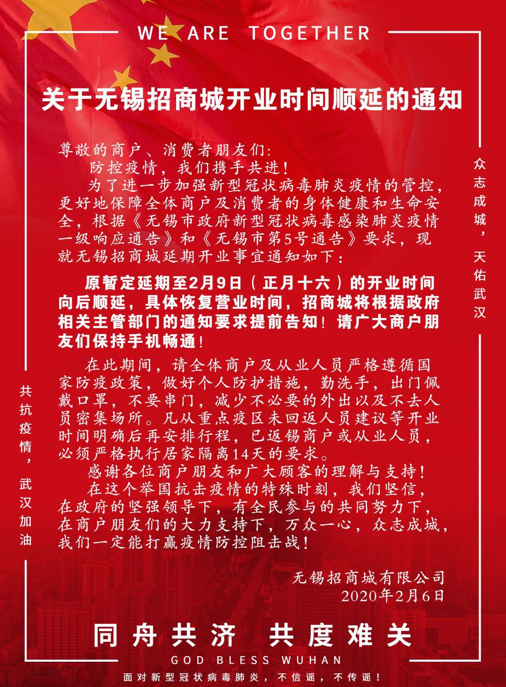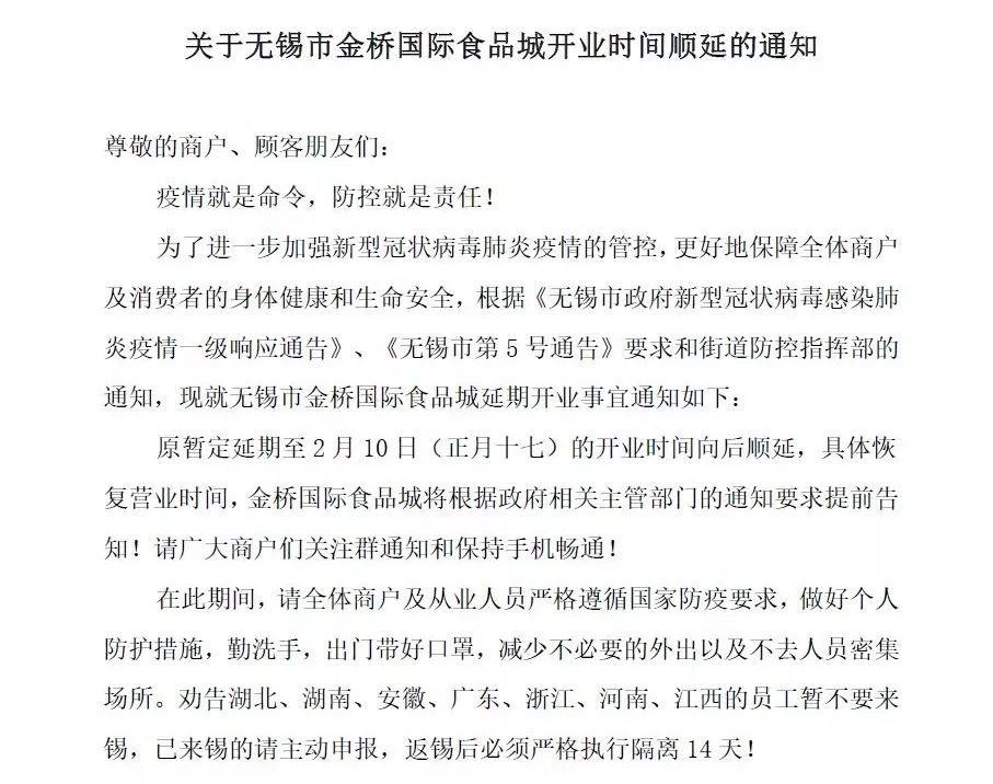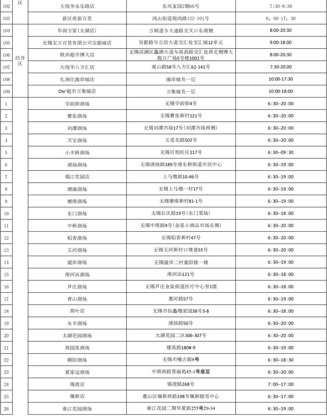 无锡肺炎防控期间商场超市营业时间(持续更新)