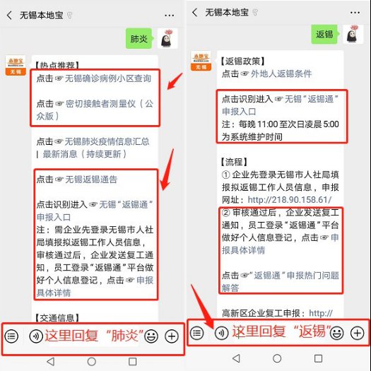 温馨提示:微信搜索公众号“无锡本地宝”,在公众号聊天框回复“肺炎”查询无锡肺炎疫情最新消息、预防措施,定点医院等;回复“口罩”,即可进入口罩预约入口,查询预约流程;回复“返锡”,进入“返锡通”申报入口,查询返锡、复工政策、高速最新消息等!