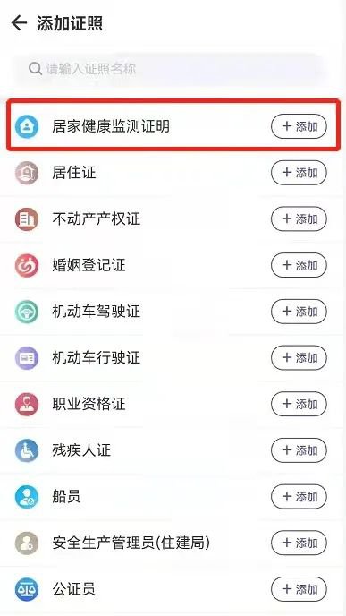 (二)进入“灵锡”APP,首页点击“数字身份”→“添加证照”→“居家健康监测证明”。