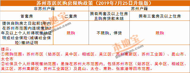 其中第①条规定有关非苏州户籍限购的从2019年7月25日起调整为:非本市户籍居民家庭在苏州市区、昆山市、太仓市范围内申请购买第1套住房时,应提供自购房之日起前3年内在苏州市范围内连续缴纳 2年及以上个人所得税缴纳证明或社会保险(城镇社会保险)缴纳证明。