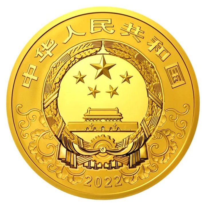 该套金银纪念币正面图案均为中华人民共和国国徽,衬以中国传统吉祥纹饰,并刊国名、年号。