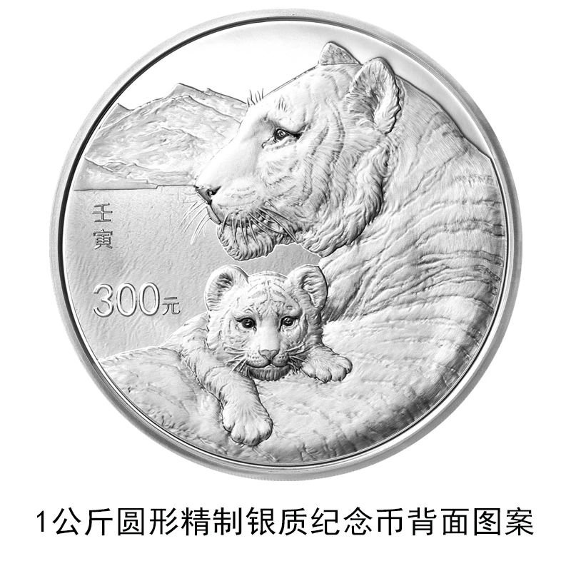 背面图案共13幅,均刊“壬寅”字样及面额。其中:10公斤圆形金质纪念币、2公斤圆形金质纪念币和1公斤圆形银质纪念币背面图案均为写实风格母子虎造型,衬以远山等设计元素。