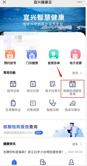 五、核酸检测完毕后,在此进入“智慧医疗”,点击核酸检测结果,实名注册成功后即可查询