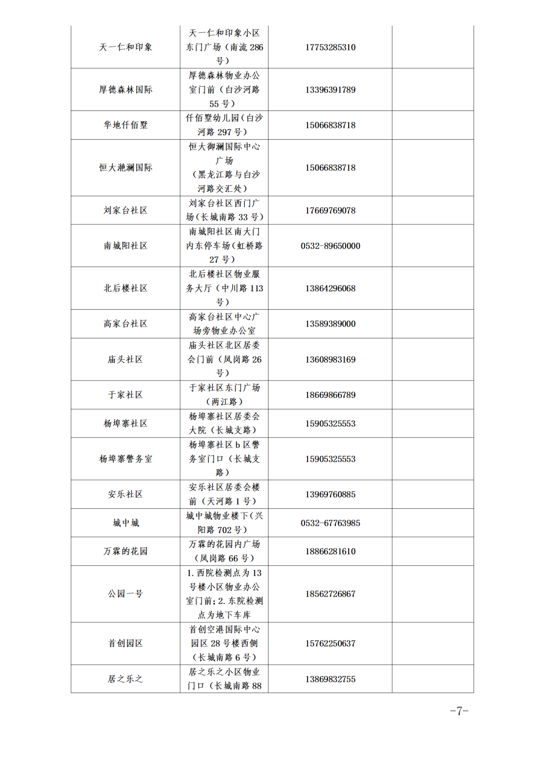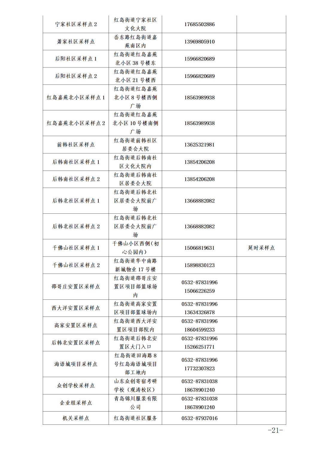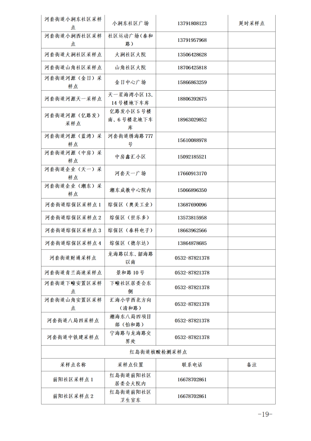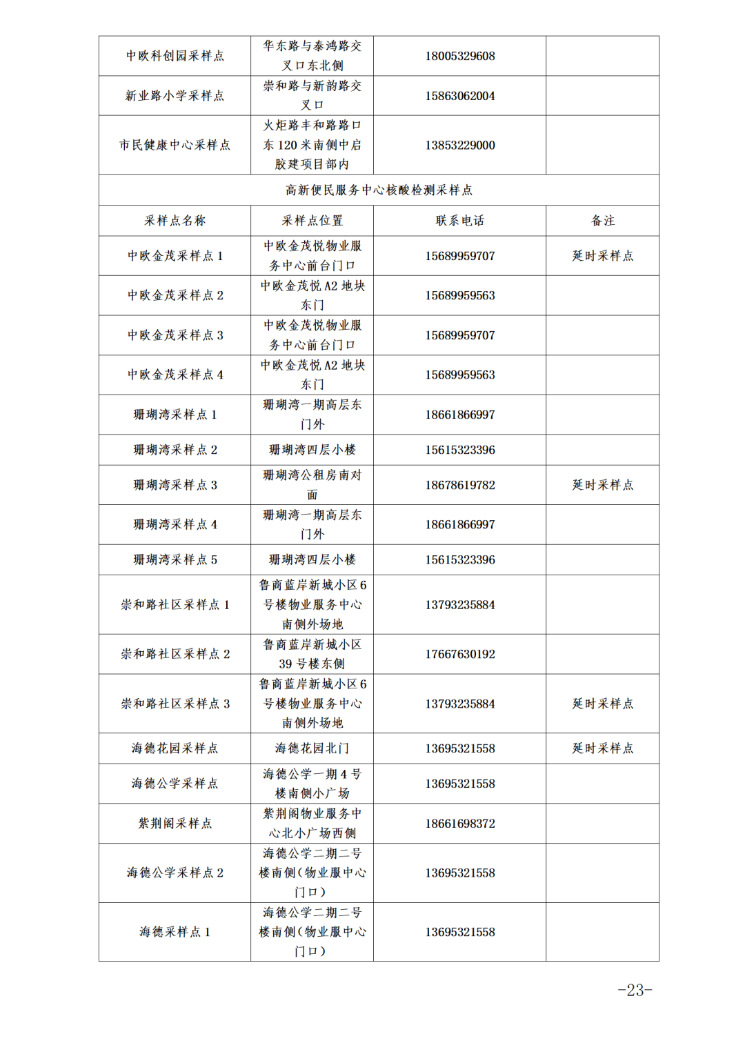 各街道、高新区防指办、高新便民服务中心就近设置采样点(采样点信息附后),请关注区及各街道、高新区防指办、高新便民服务中心发布的信息。