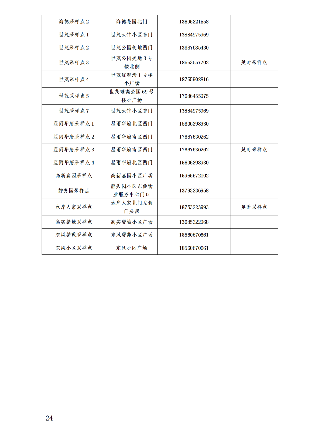 2022年6月24日上午6:00-上午10:00,下午3:00-晚上8:00,设置部分延时采样点至晚上9:00,相邻采样点可实行错时采样,具体时间段由各街道、高新区防指办、高新便民服务中心自行确定,确保规定采样时间段内居民在本辖区有点可采。
