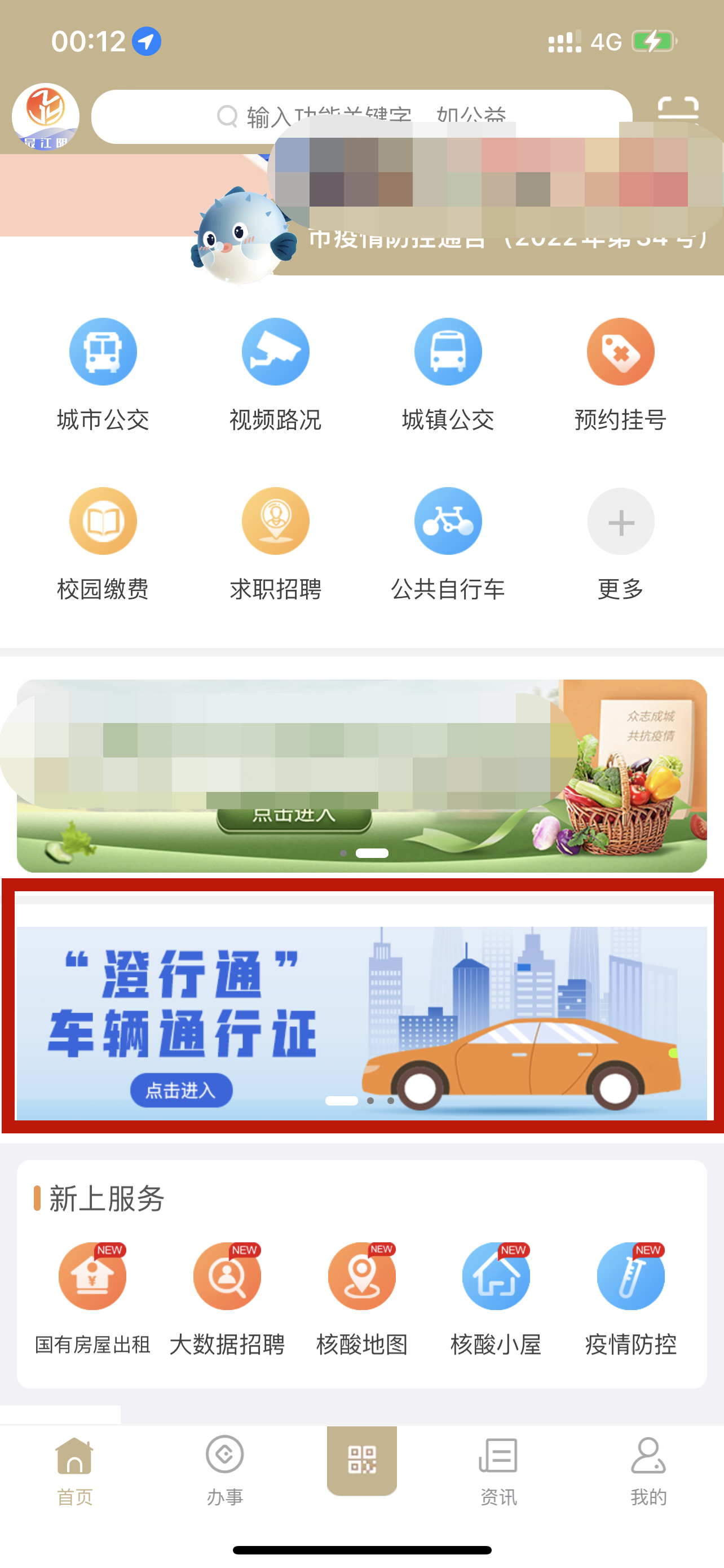2、在首页找到中部【澄行通】,进入信息填报界面。