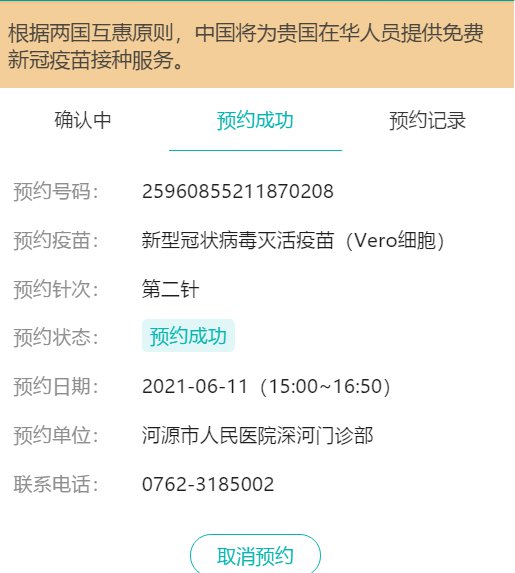 七、预约成功后,点击下方的“预约记录”,即可查看预约记录信息。