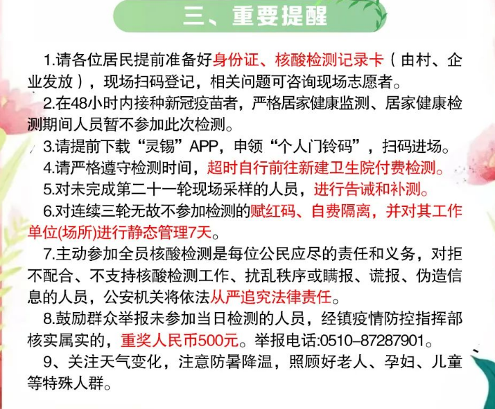 宜兴新建镇全员核酸检测安排(附采样点)