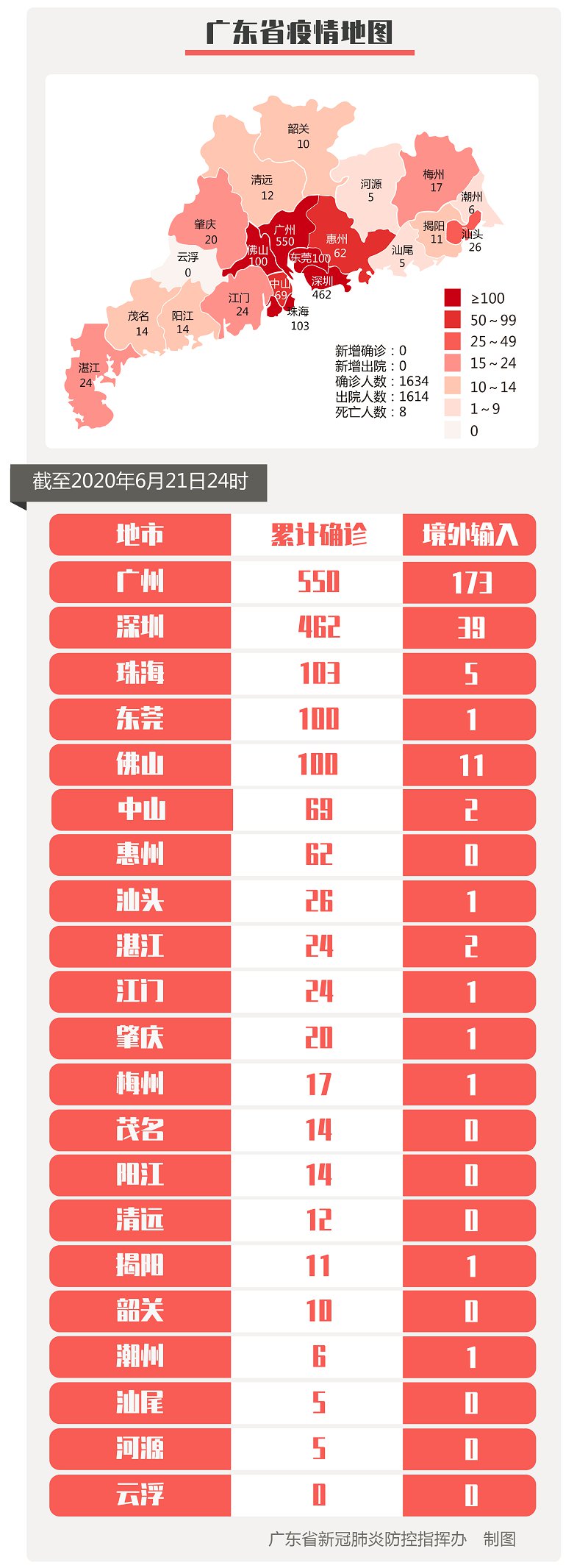 截至6月21日24时,全省累计报告新冠肺炎确诊病例1634例(境外输入239例)。目前在院12例。