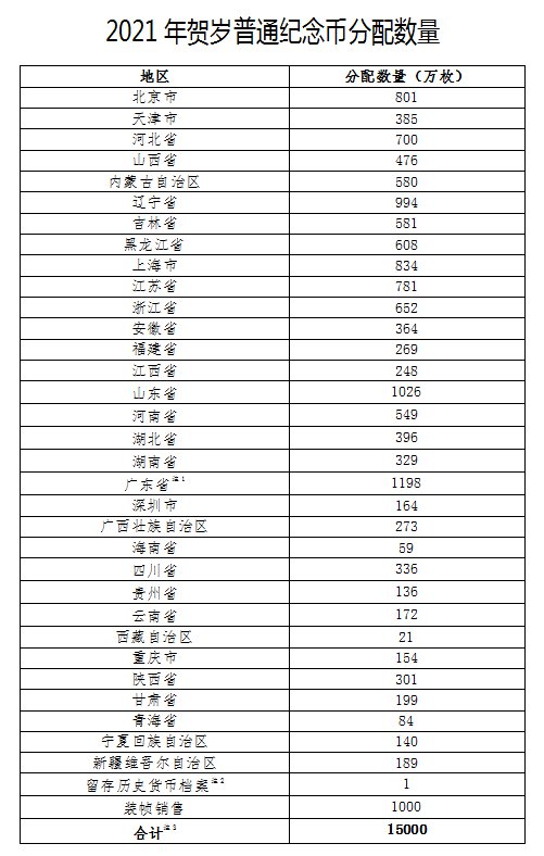 注3:中国人民银行可能根据各地预约情况对各省、自治区、直辖市的分配数量进行调整,调整结果将另行公布。