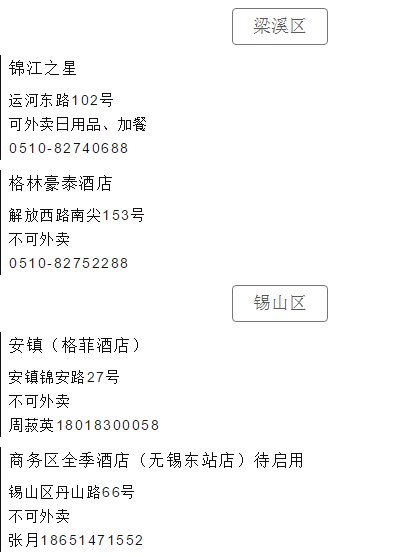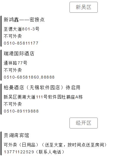 2020上海入境返锡人员隔离酒店地址+电话