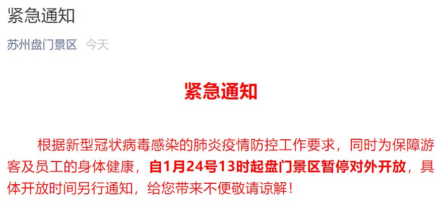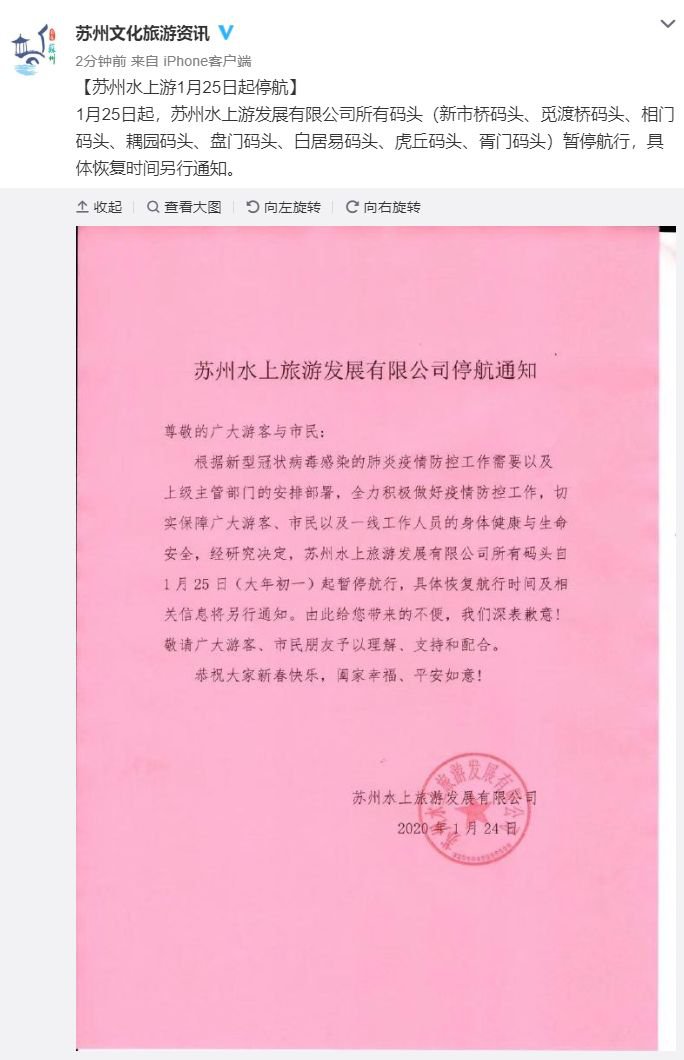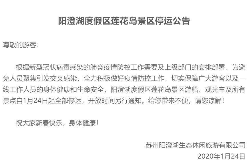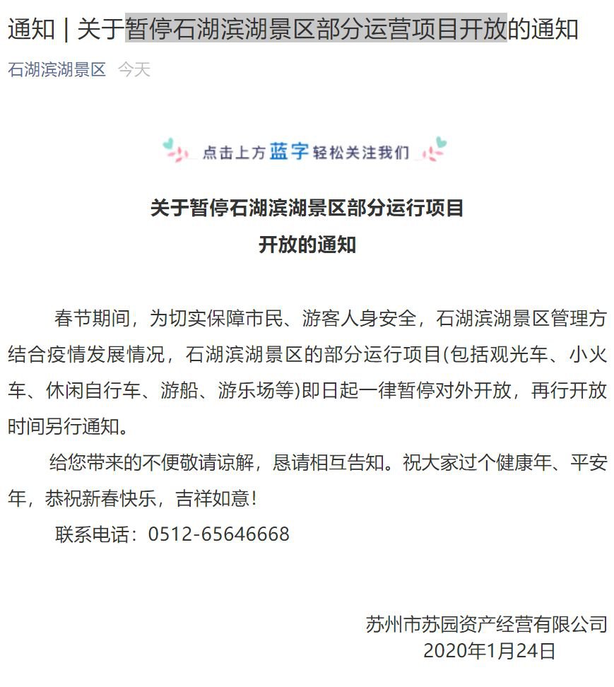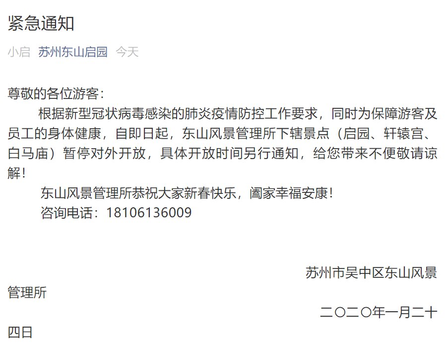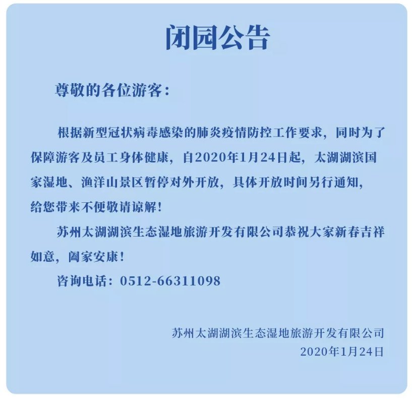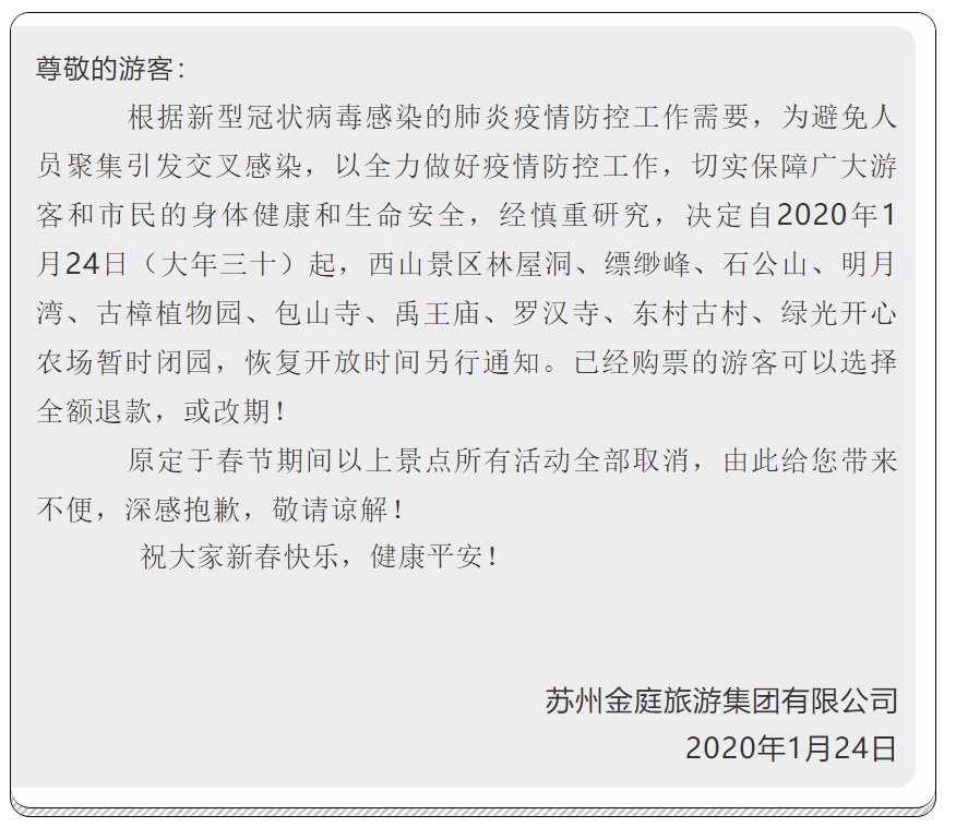 苏州新型冠状病毒防疫期间暂停开放景区: