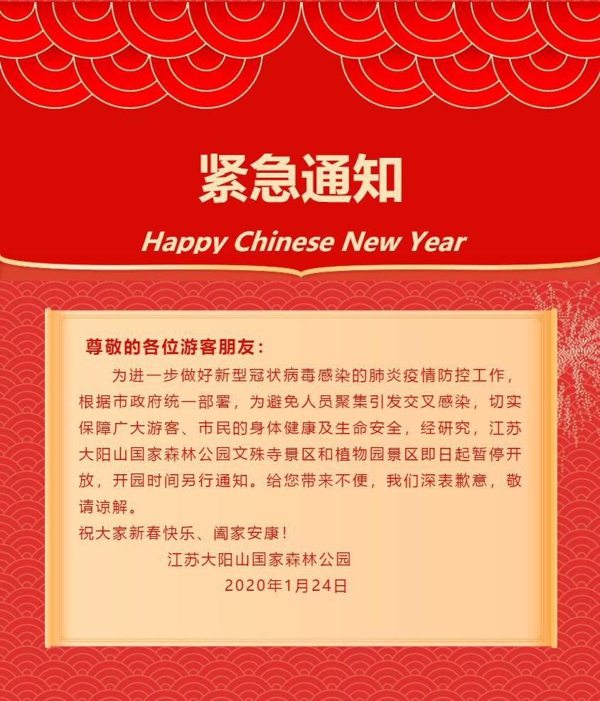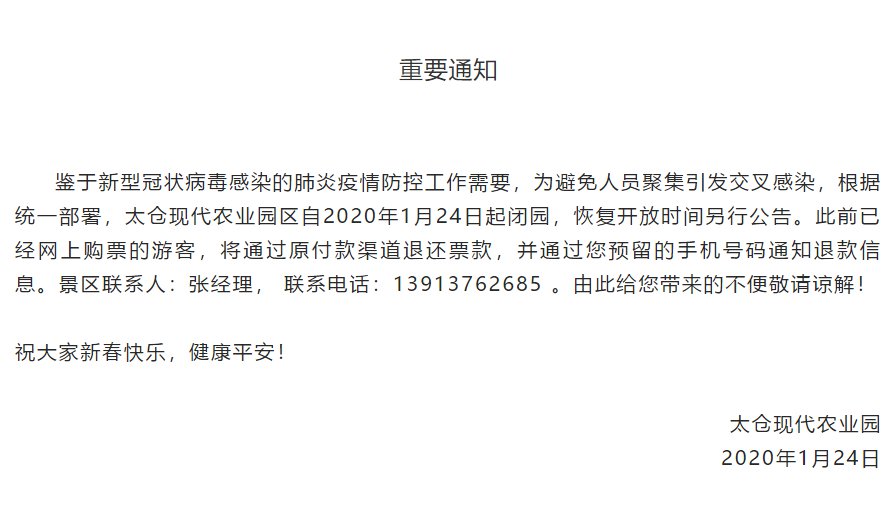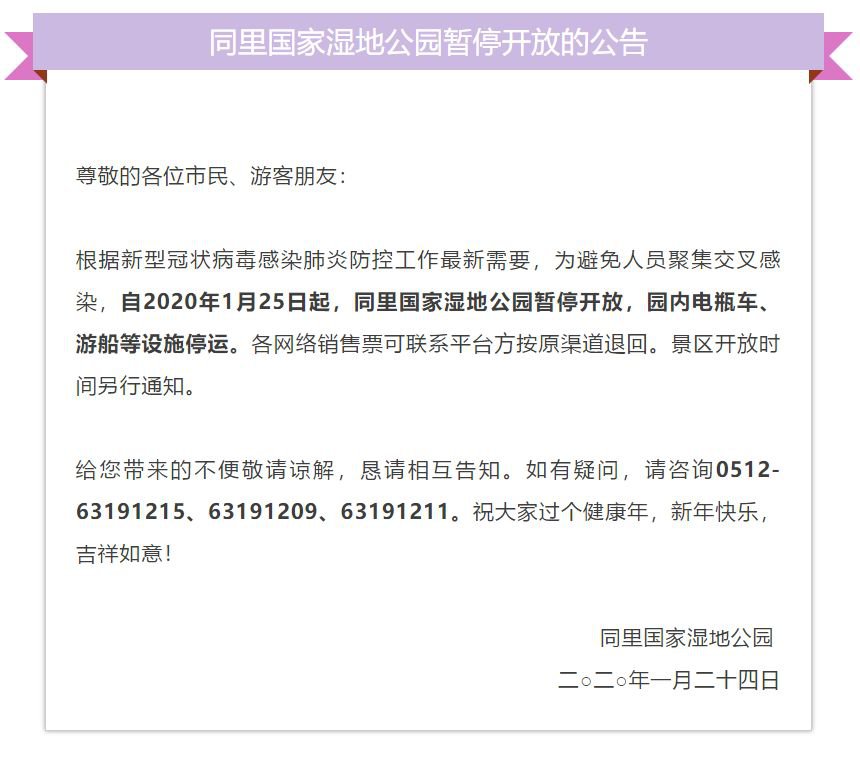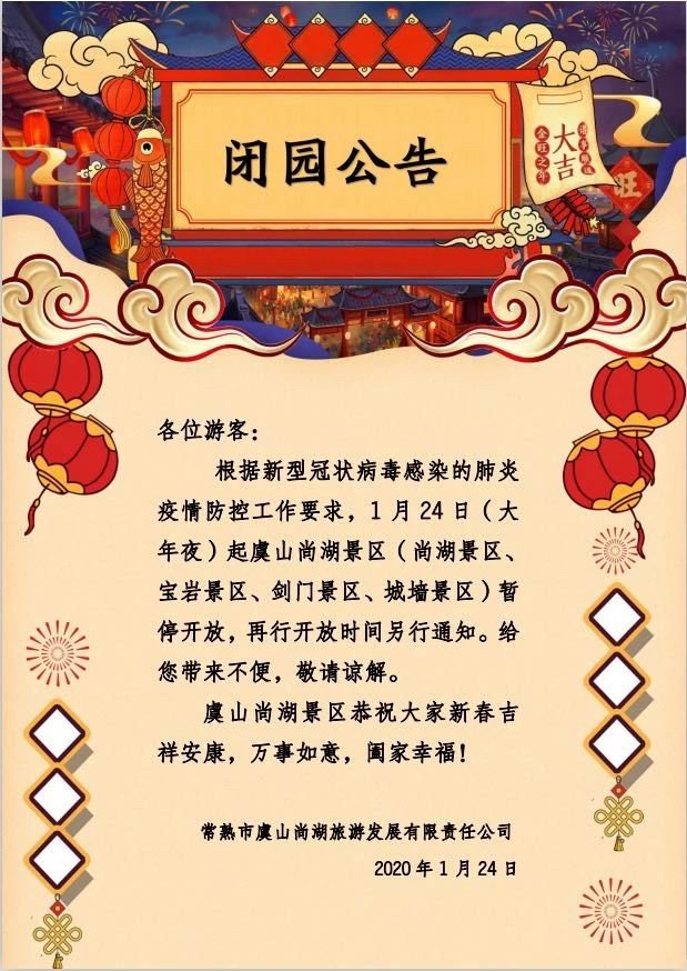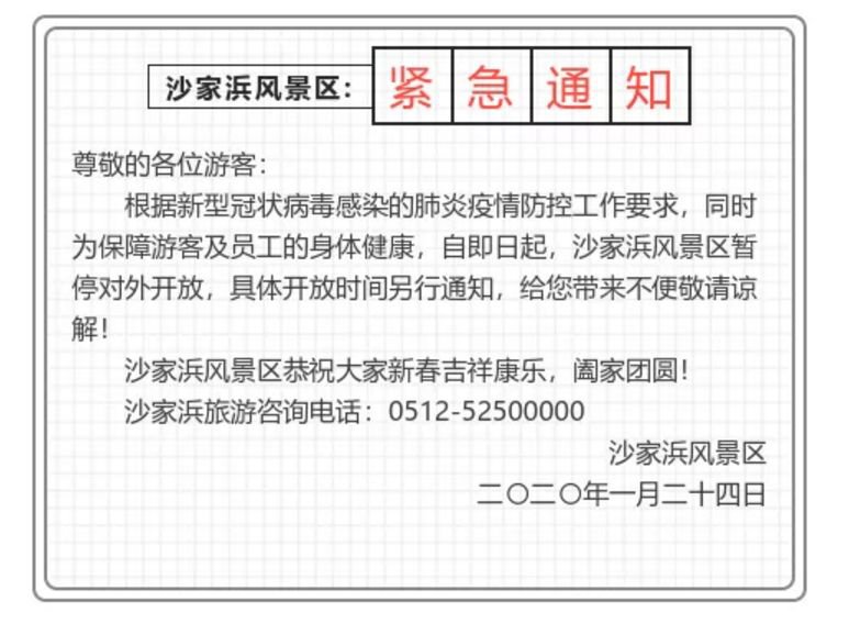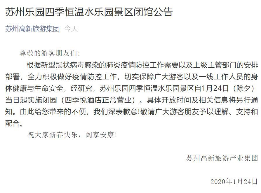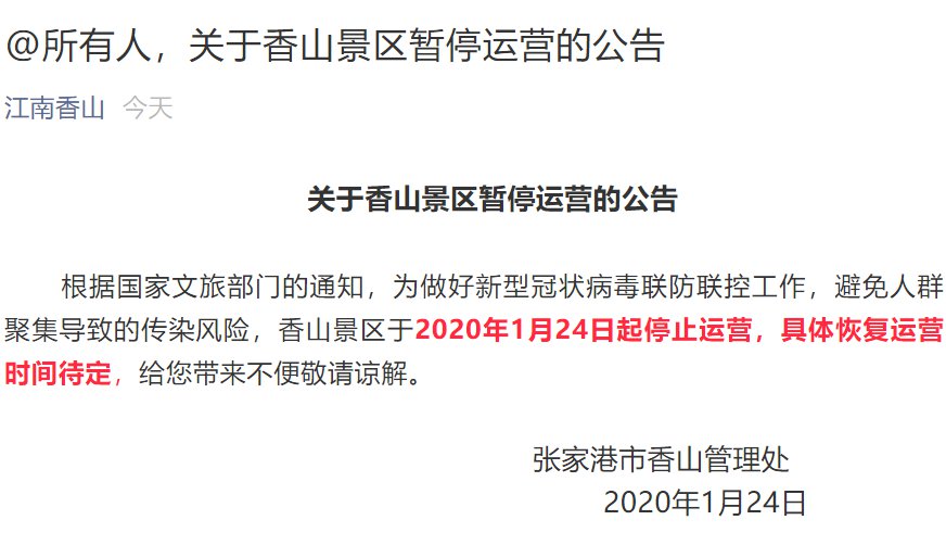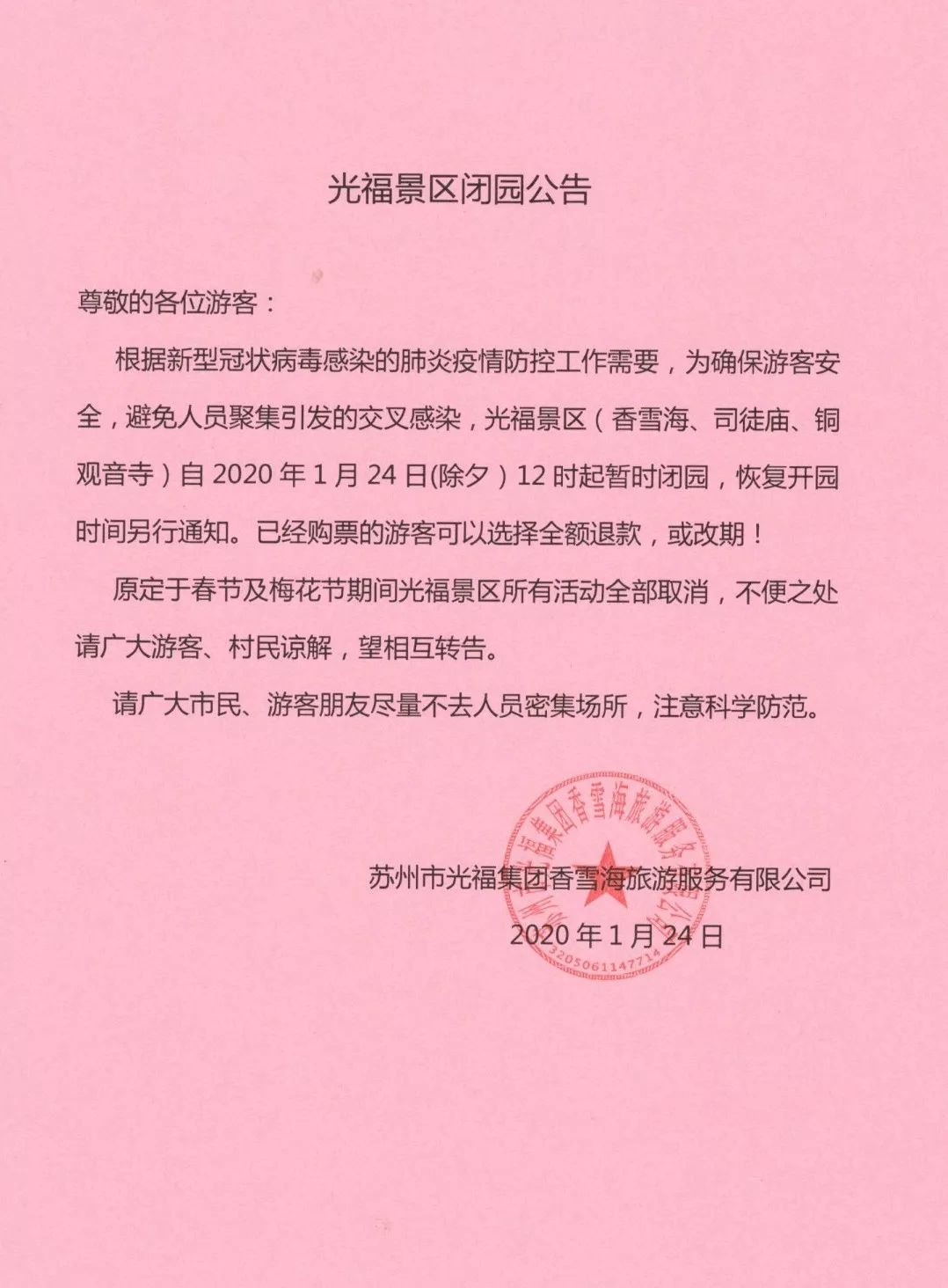 苏州新型冠状病毒防疫期间暂停开放景区: