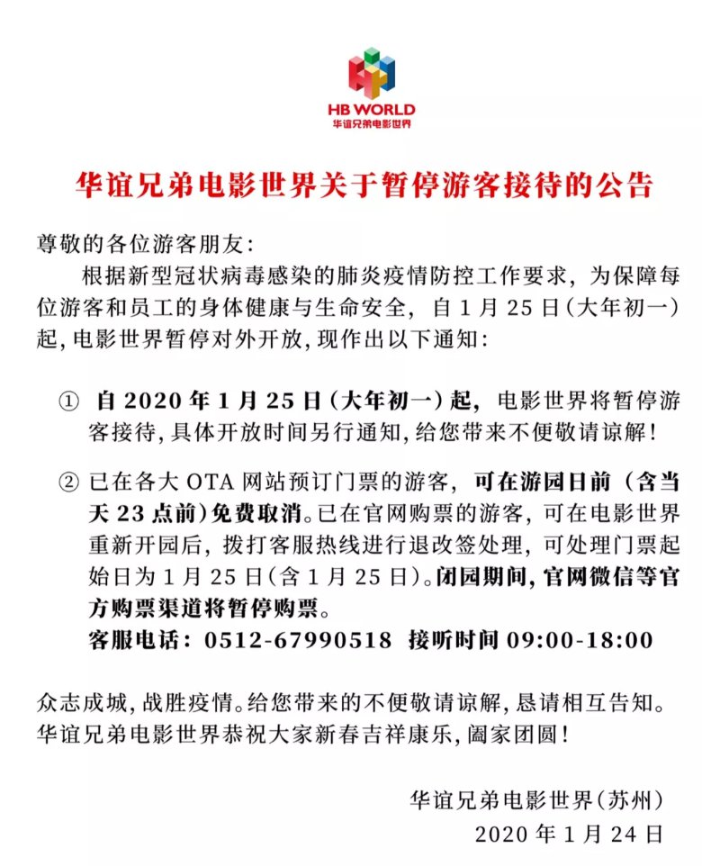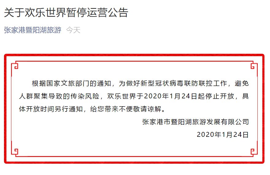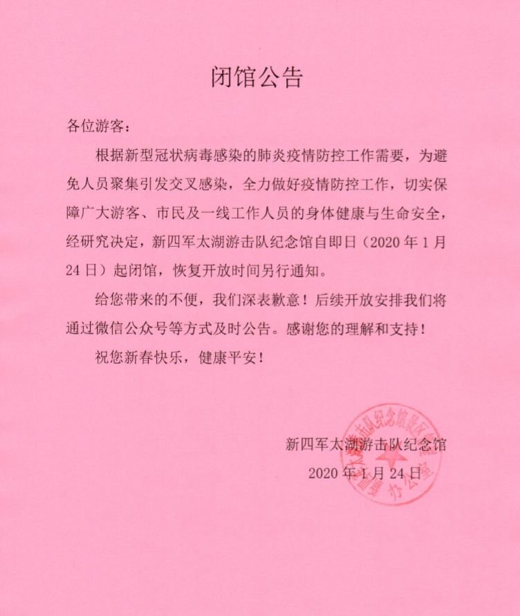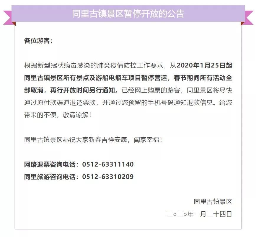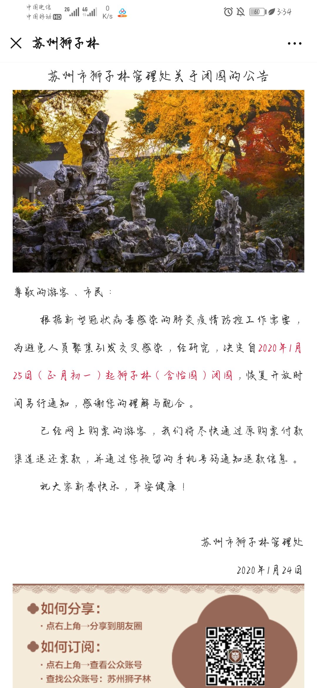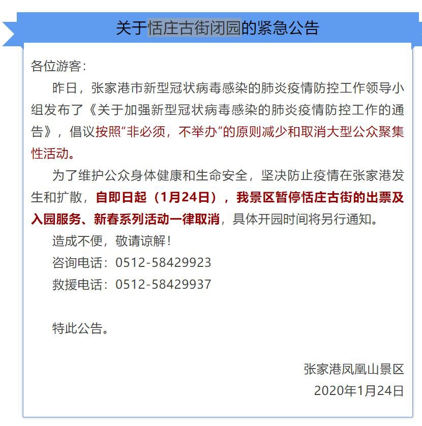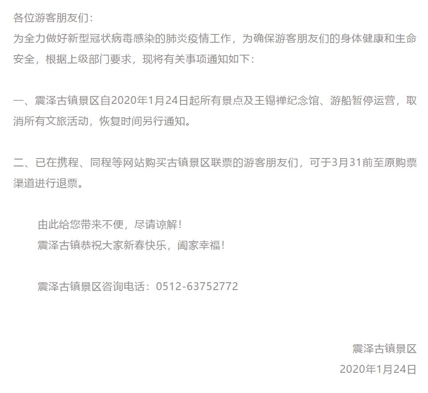 苏州新型冠状病毒防疫期间暂停开放景区: