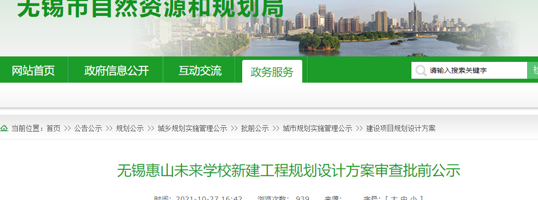 根据《无锡惠山未来学校新建工程规划设计方案审查批前公示》