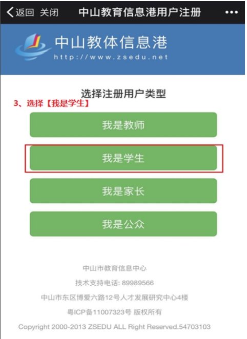 三、考生用户选择注册用户类型【我是学生】