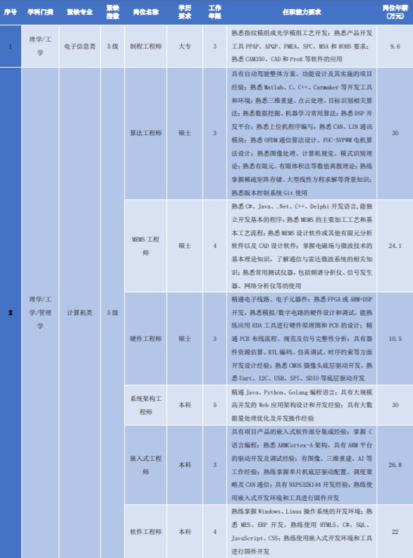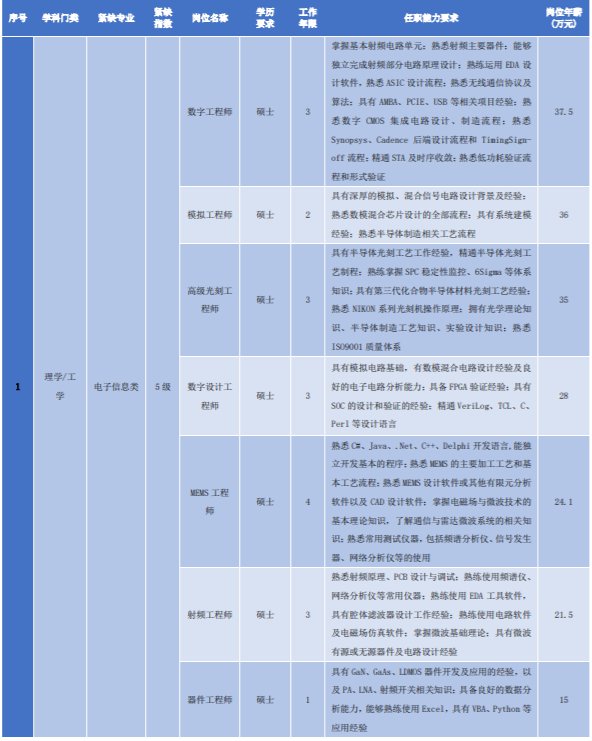 《目录》的基本框架和内容包括: 岗位名称、岗位职责、岗位类型、专业要求、学历要求、相关工作年限要求、任职能力要求和岗位年薪八个部分。其中: