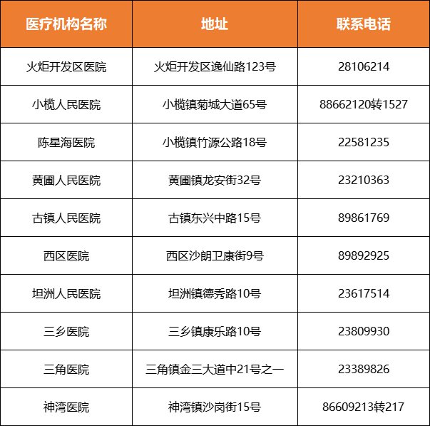 如果错过以上三家酒店的免费检测时间,中山市指定10家医疗机构可全天24小时开展新冠核酸采样服务,有需要的客商朋友可随时前往进行核酸检测,名单如下:
