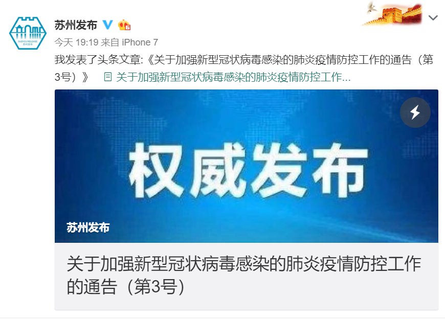 根据苏州市新型冠状病毒感染的肺炎疫情防控指挥部2020年1月26日傍晚发布的《关于加强新型冠状病毒感染的肺炎疫情防控工作的通告(第3号)》,从即日起,苏州各地各单位最大程度动员离苏人员不得提前返回苏州,本地人员做到减少流动。