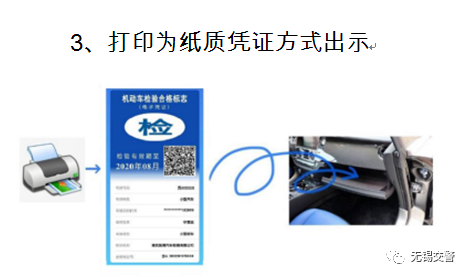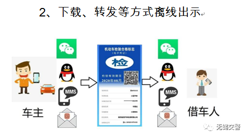 可以提前登录互联网交通安全综合服务平台(www.122.gov.cn)或“交管12123”手机APP,将检验标志电子凭证下载并存储于手机中,使用时直接出示。下载的电子凭证也可以转发、分享,使用时可直接出示。