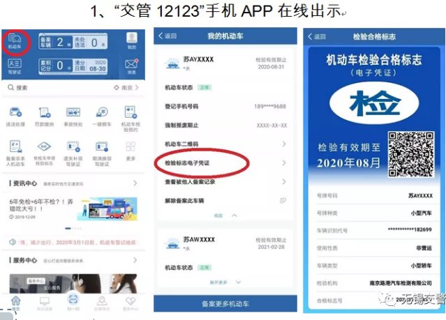 公安交管部门通过全国统一的互联网交通安全综合服务平台、“交管12123”手机APP发放检验标志电子凭证,为机动车所有人、驾驶人以及相关行业和管理部门提供电子证照服务。