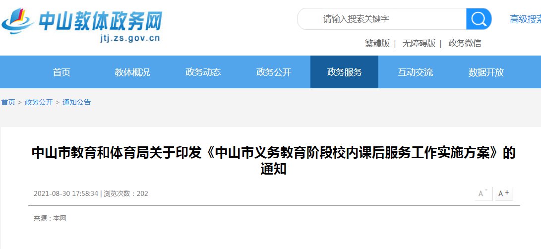 中山中小学生校内课后服务托管最新消息(持续更新)