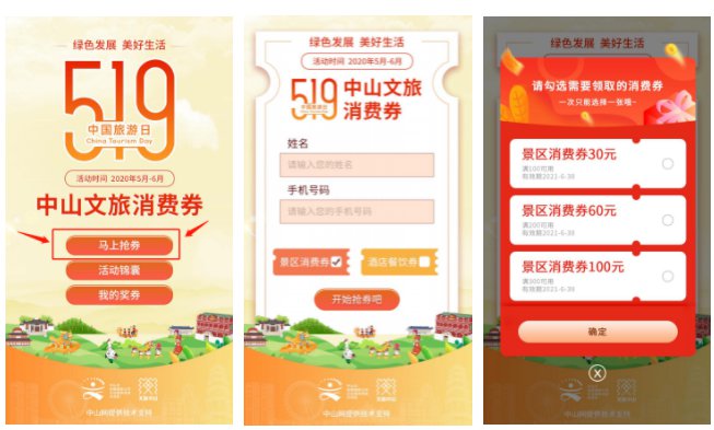 活动通过文旅中山微信公众号平台向广大中山市民、游客派发中山文旅消费券。文旅消费券活动抢票计划分三期举办,五月一日举办第一期;5·19中国旅游日举办第二期;端午节举办最后一期。